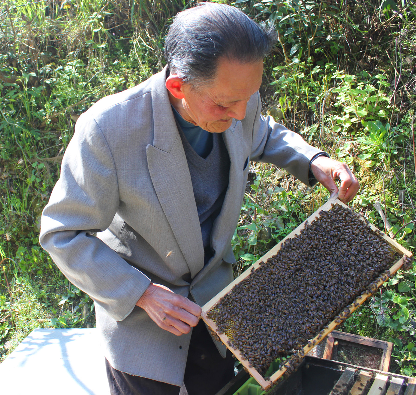 “養蜂,一個人養起來不算,要大家都搞起來才好。這真的是一項綠色產業,沒有污染。”3月25日,在安徽黄山市休寧縣溪口鎮長豐村吳永言家,81歲的老爺子堅定爽朗地對休寧縣中蜂養殖調研組人員說道,“這還是個養生的產業,你們看我身體這麼好,就跟養蜂有關系。”