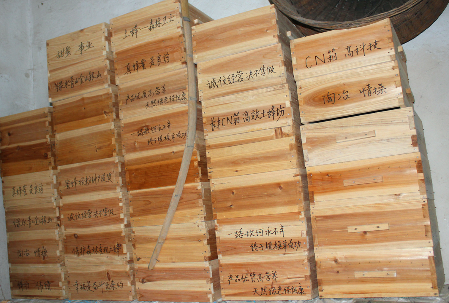 吳永言從年輕時便開始研究養蜂,期間也失敗過。但他一直沒有放棄,通過自己做蜂箱、訂閱雜誌、研究養殖技術、攻克養殖難關,半個世紀的堅持不懈,近幾年一年比一年好,收穫也越來越多。2018年28箱,平均每箱產蜜11斤;2019年46箱,平均每箱產蜜25斤;2020年55箱,平均每箱產蜜26斤。在他的記賬簿裏,記錄了近年來的產蜜成果。在他製作的蜂箱上,還用毛筆認真地書寫了“幸福是奮鬥出來的”“誠信經營 決不售假”“一路坎坷永不棄 終於規模養成功”等包含正能量的語句。“小蜜蜂,大產業,真的可以摸索摸索。”談及今後可能會邀請他做技術指導,他很開心地應承道,“只要有人肯學,一定包學會。”