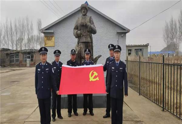 「我志願加入中國共產黨員,擁護黨的綱領,遵守黨的章程,履行黨員義務……」富裕縣公安局紹文派出所全體黨員重溫入黨誓詞的聲響在烈士故居內久久環繞。