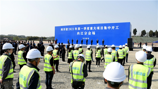 3月29日上午,四川省2021年第一季度重大項目集中開工內江分會場開工儀式舉行,內江集中開工項目50個,總投資132.29億元。這些項目建成後,將助力內江全面融入成渝地區雙城經濟圈建設再提速。