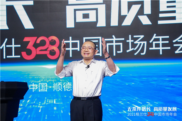 格蘭仕集團董事長兼總裁梁昭賢在會上演講