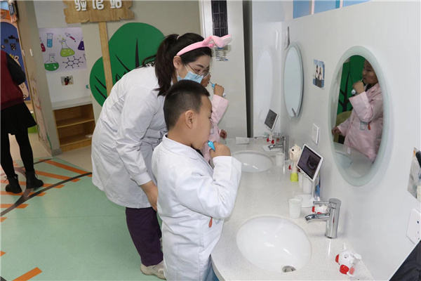 據香坊區口腔病防治所王曉斐介紹,兒童正處於乳牙替換、恆牙萌出的混合牙列特殊階段,是口腔疾病的敏感和高發人群,也是獲得知識和建立正確行為方式的重要階段,這一時期口腔健康知識的掌握和口腔健康狀況的好壞將對終生口腔、乃至全身健康產生至關重要的作用。因此,加強兒童口腔疾病的綜合防治宣教,有助於兒童養成良好的口腔衛生習慣,改善口腔衛生狀況,促進口腔和全身健康。宣教中心以「牙齒叢林奇幼之旅」為主題設計,將小朋友喜愛的小動物融入其中,內設豆豆熊影院、小鹿實驗室、刷牙體驗區、長頸鹿圖書館、大象牙醫館五大科普區域,兒童可以通過觀看口腔知識宣教片、觀察和觸摸各類牙齒模型、刷牙指導儀正確跟刷練習等多種形式認識自己的牙齒、學習口腔健康知識,尤其重要的是,通過小牙醫角色扮演可以有效的減少兒童對口腔病治療的恐懼感,樹立兒童正確面對牙齒疾病的信心。宣教中心的建成投用,將有助於進一步提高香坊區兒童口腔病防治工作水平,助力實現「健康香坊」目標。王曉斐表示,該中心有望成為繼科技館、天文館、海洋館之後又一深受廣大兒童喜愛的兒童健康知識科普場所。