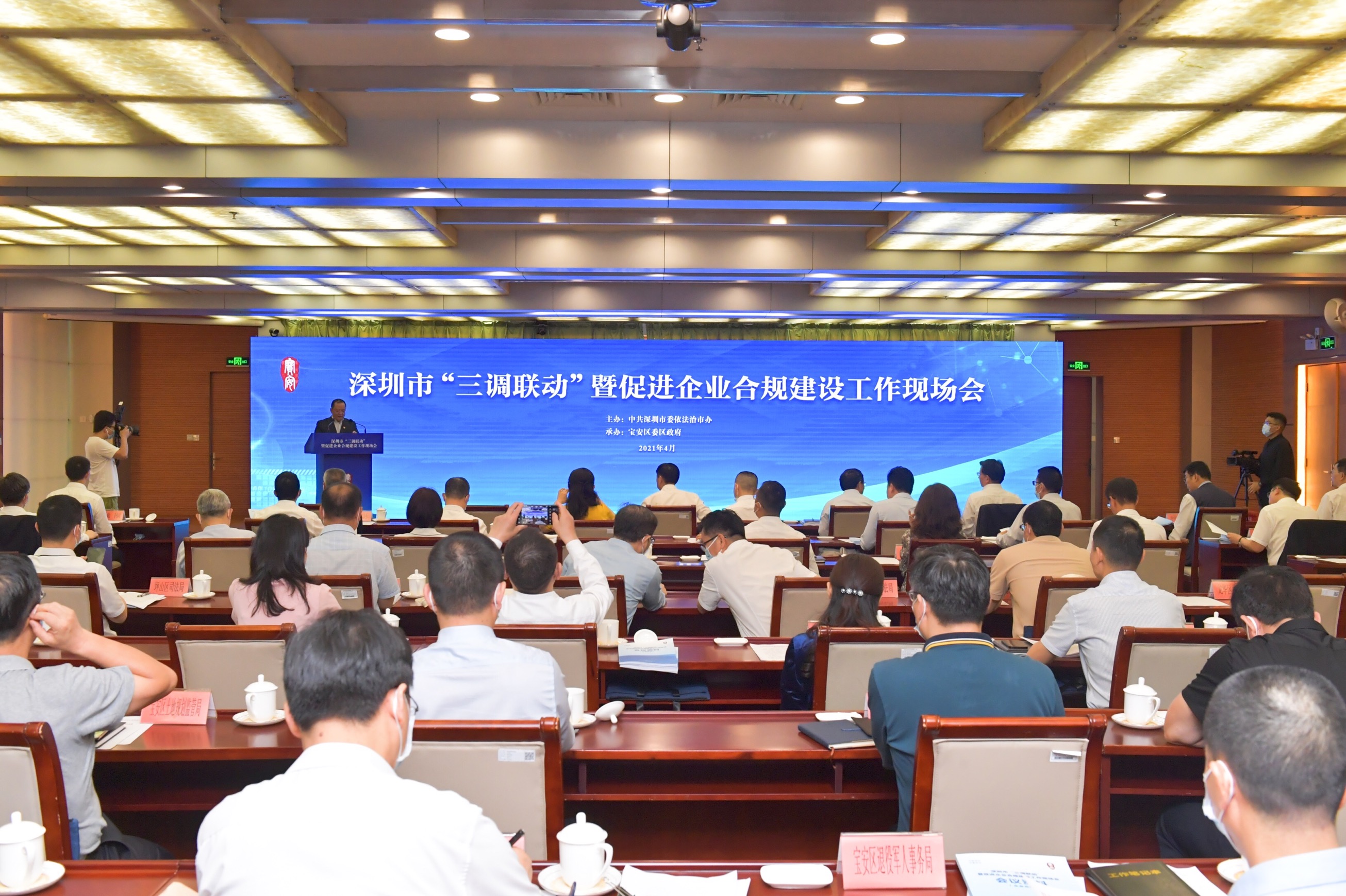 4月1日,深圳市「三調聯動」暨促進企業合規建設工作現場會在寶安召開,會議推介了寶安相關工作經驗並部署全市有關工作。市委常委、市政府黨組成員田夫出席會議並講話,市司法局局長蔣溪林主持會議,寶安區委副書記、區長王立德在會上致辭,市司法局黨委委員、市律師行業黨委專職書記曹海雷在會上作工作部署。