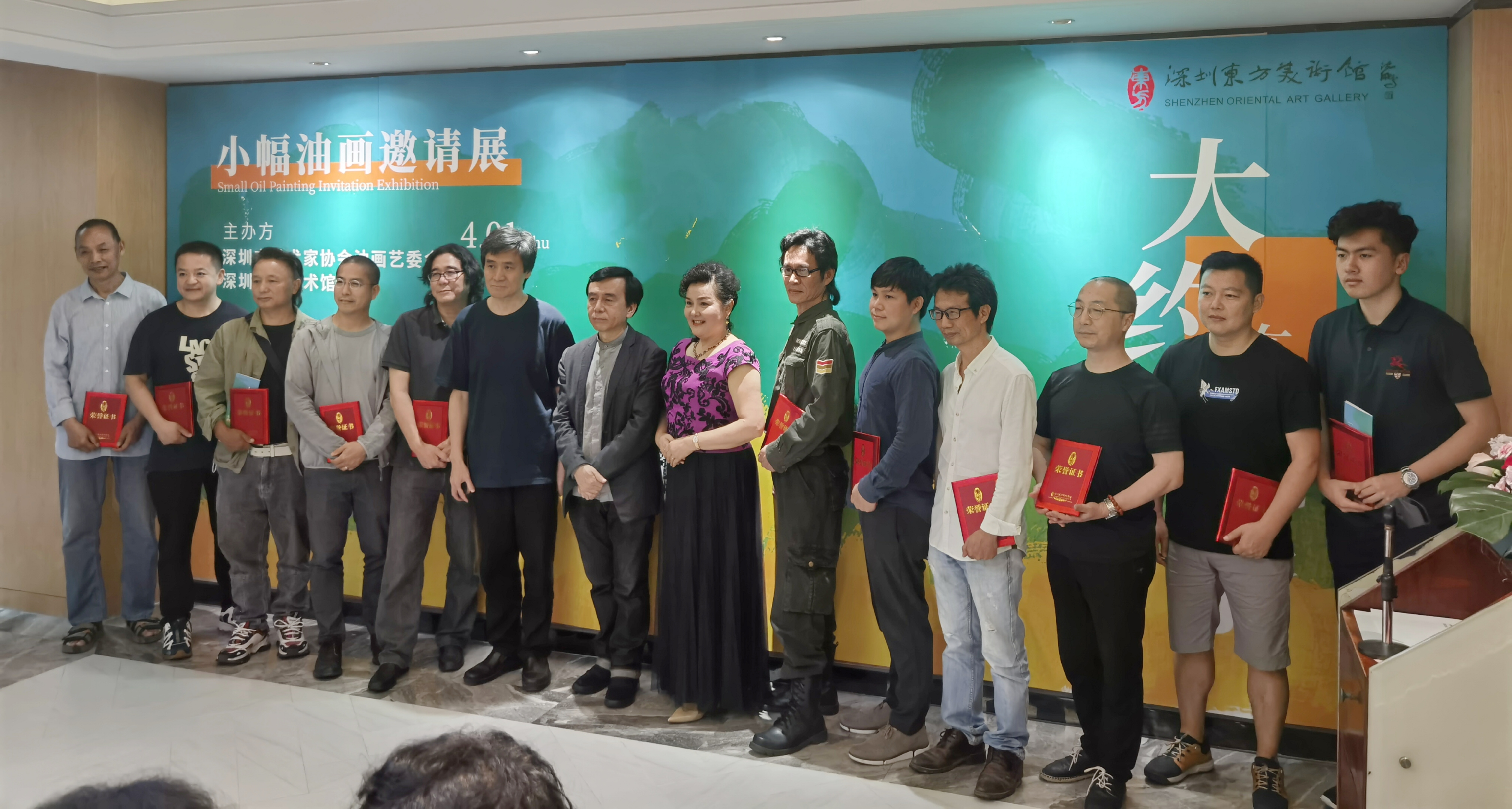 中國美術家協會理事、廣東省美術家協會副主席、深圳市文聯黨組成員、巡視員梁宇,深圳市美術家協會副主席、深圳大學藝術學部主任鍾曦,深圳大學藝術學部黨委書記張劍濱,深圳市美術家協會副主席郝強、陳向兵、方曉龍,深圳市婦聯原副主席、福田區政協原主席、深圳女畫家協會會長陳基渝,深圳報業集團原副總編、深圳特區報原副總編張興文,深圳市品牌促進會會長李朝曙,深圳市政協委員、深圳東方美術館董事長鍾帆飛等領導、嘉賓、媒體朋友、市民共百餘人出席了開幕式。