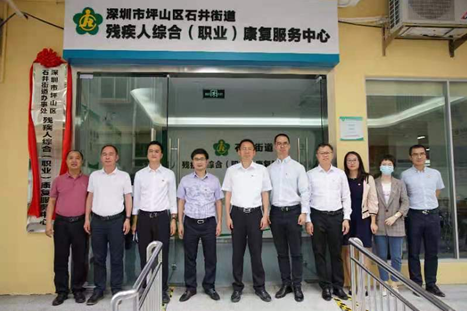 隨後,龔德宇、陳向榮、朱競豐、劉趙順共同為石井街道殘疾人綜合(職業)康復服務中心舉行揭牌,並參觀了中心各個功能室(區),了解職康中心的運營模式,並與現場的職康會員進行了親切交談,聽取服務對象的意見。