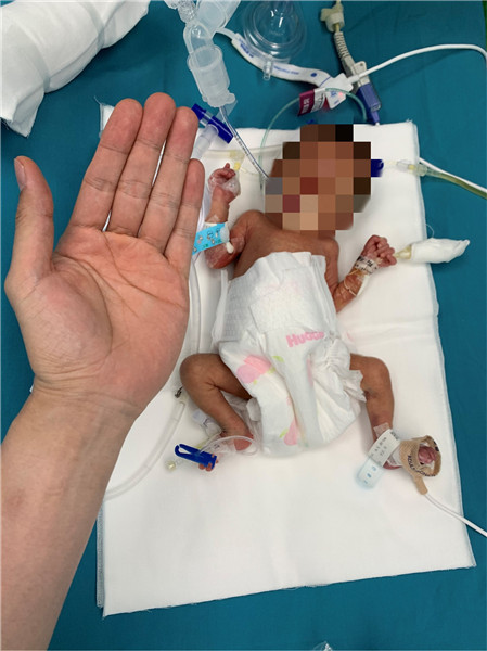 3月17日,在媽媽肚子裏「住」了7個多月的小希(化名),在深圳一家醫院出生。由於比足月寶寶提前了80天「問世」,她的出生體重只有860克,和成人的手掌差不多大。除了多臟器發育不良,還伴有嚴重的呼吸窘迫,只能依靠呼吸機輔助呼吸。