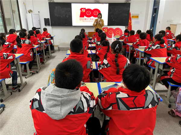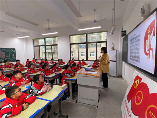 「同學們,你們認識這個標識嗎?」「這裏面有哪些數字和圖案,分別代表什麼意義?」近日,安徽省合肥市肥東縣三和小學四年級一班的張樂老師和新時代文明實踐志願者為同學們上了一堂生動的黨史學習教育主題班會課,掀起了青少年學生黨史學習教育的熱潮。