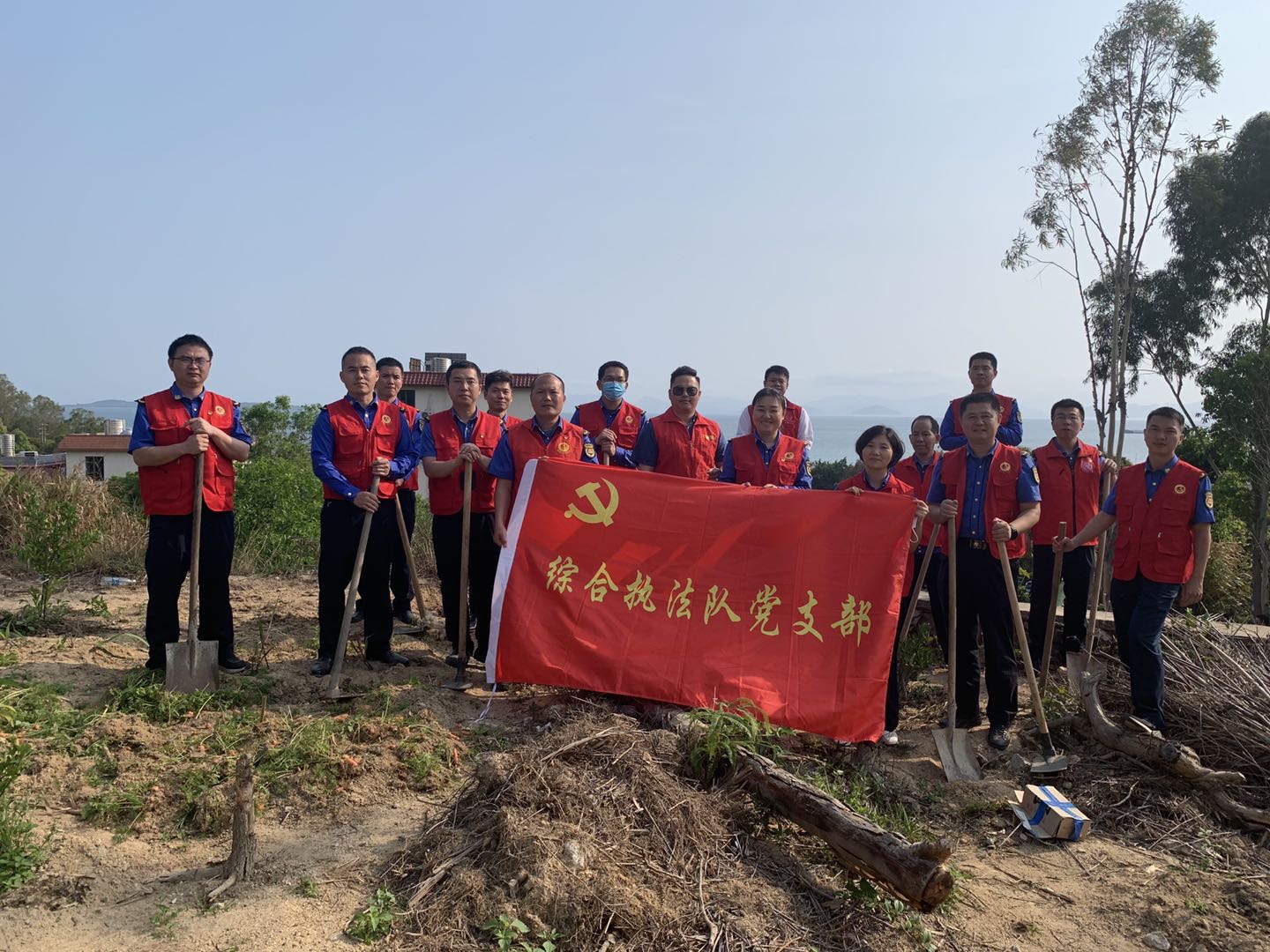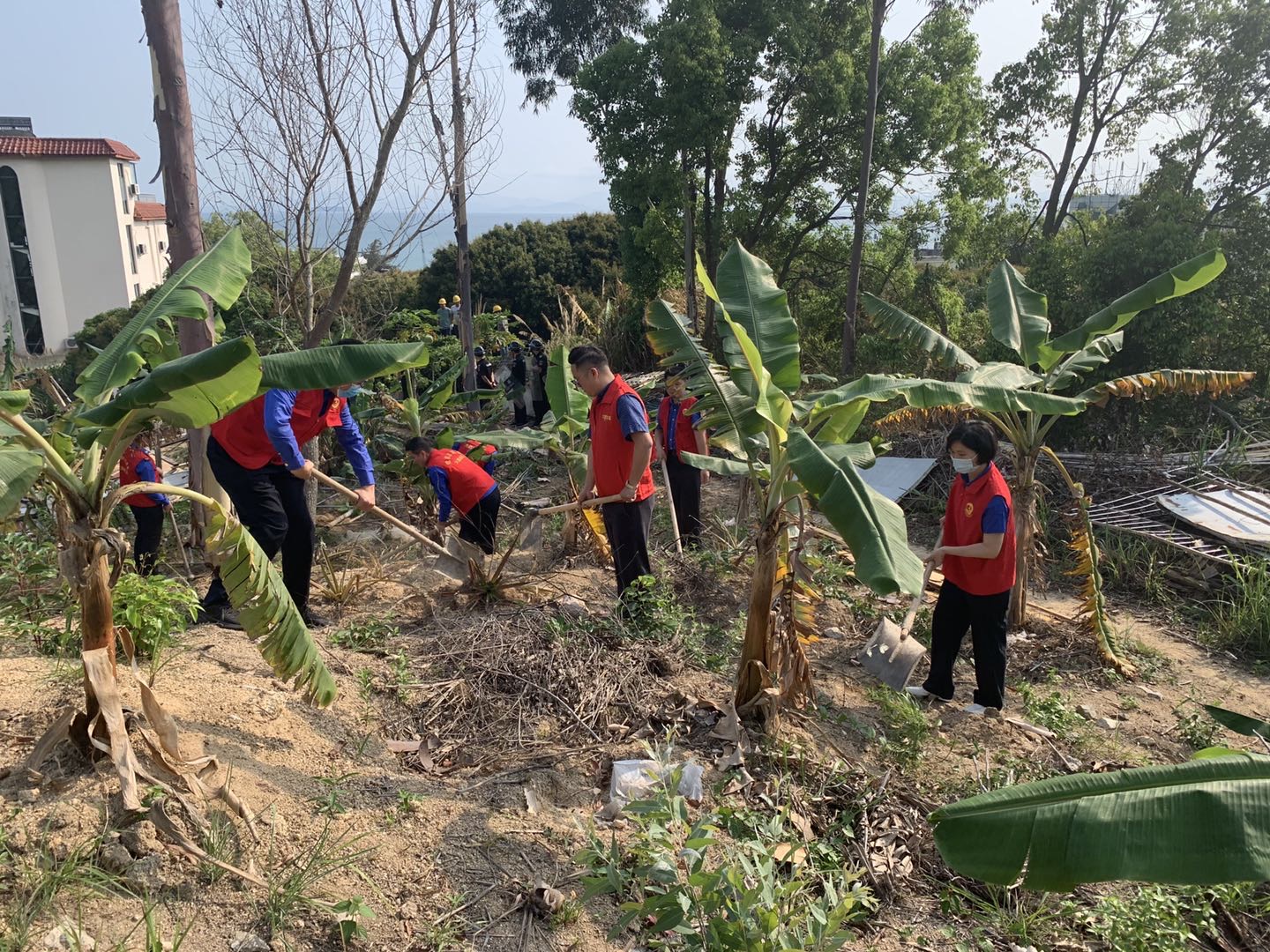 在官湖學校停車場附近的空地上,身着紅色馬甲的黨員們正頂着炎炎烈日,扛着鋤頭、揮舞着鐵鍬和鐮刀,有條不紊地拆窩棚、清理菜地,清除現場一片熱鬧繁忙,紅色馬甲在陽光下格外耀眼。在大家的努力下,共清理菜地面積約2000平方米,停車場面貌煥然一新,還居民一個整潔、優美、舒適的生活環境。