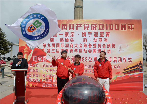4月13日,「龍汕一家親 攜手迎亞青」徒步之旅在哈爾濱防洪紀念塔廣場啟動,徒步活動由哈爾濱市廣東潮汕商會、第九屆國際潮商大會組委會主辦,哈爾濱市工商業聯合會、哈爾濱市道里區人民政府作為指導單位,中央大街管委會和汕頭市工商業聯合會作為支持單位。