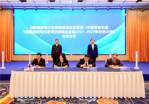 為實現成德眉資地方志事業一體化高質量可持續發展,4月14日,《成德眉資地方志事業同城化發展2021—2023年行動計劃》簽約儀式暨成德眉資地方志事業同城化發展第一次聯席會議在成都召開。會上,四市共同簽署了《成德眉資地方志事業同城化發展2021—2023年行動計劃》,發佈了成德眉資地方志事業同城化發展聯席會議機制LOGO。