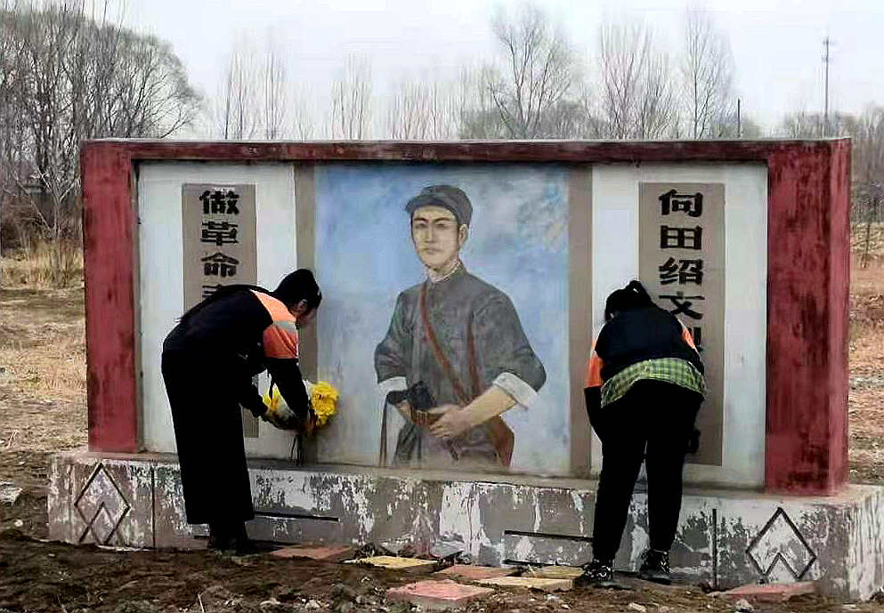 日前,在黑龍江省富裕縣紹文鄉中心學校,全校師生齊聚校園,共同緬懷田紹文烈士。活動中,學生們向田紹文烈士的畫像敬獻了鮮花,並清掃畫像上的灰塵。教師代表為全校師生講述了田紹文的英雄事跡以及介紹了紹文鄉名字的由來。