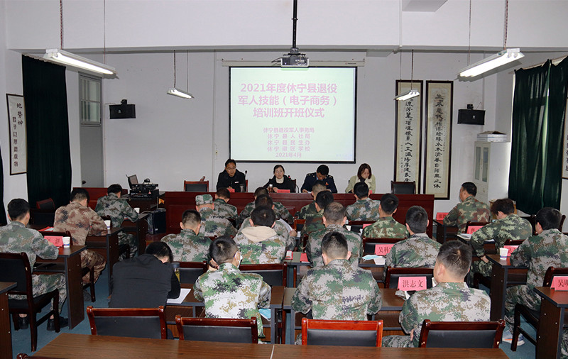 在黨史學習教育中,休寧縣積極為退役軍人辦實事,解困難。自4月12日開始,休寧縣徽匠學校舉辦民生工程暨退役軍人技能(電子商務)培訓班,對24名退役軍人開展為期3個月的免費技能培訓“充電”,全面提升職業技能水準和適崗能力。
