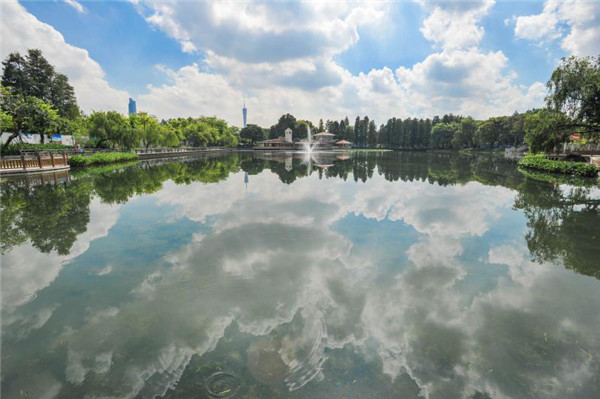 越秀區東山湖水天一色,相互呼應