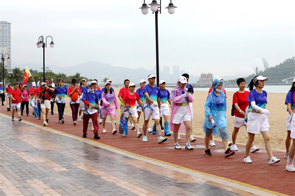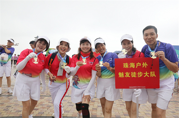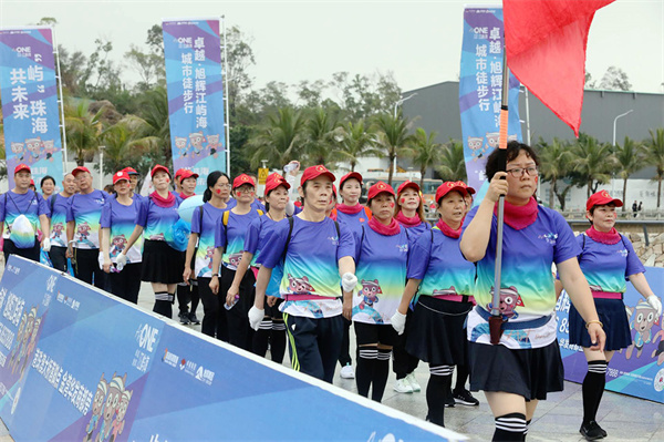 當天上午,珠海的天空飄起了小雨,但市民的參與熱情依然高漲,情侶路上海風輕拂、人潮湧動。朝氣勃發的徒步市民們快樂出發,一路向南,盡享海風、沙灘、美景,組成了一道流動的風景線。
