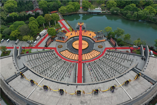 據瞭解,2021年公祭大禹陵典禮包括現場祭祀和網上公祭,現場祭祀典禮分為肅立雅靜、奏樂、擊鼓撞鐘、敬獻花籃、恭讀祭文、行禮、獻祭舞、頌唱大禹紀念歌、禮成等九項儀程。