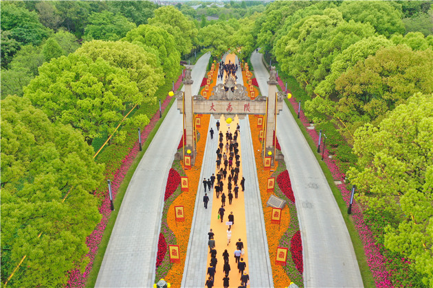 盛閱春恭讀祭文,頌揚大禹治水的偉大功績,表達紹興兒女堅持以習近平新時代中國特色社會主義思想為指引,緊緊圍繞忠實踐行“八八戰略”、奮力打造“重要窗口”主題主線,聚焦聚力“四個率先”戰略目標,矢志錨定爭先進位工作導向,率先走出騰籠換鳥、鳳凰涅槃的智造強市之路,率先走出面向全國、走向全球的高效循環之路,率先走出人文為魂、生態塑韻的城市發展之路,率先走出全域覆蓋、上下貫通的整體智治之路,為全省、全國現代化建設大局作出更大貢獻的堅定決心。