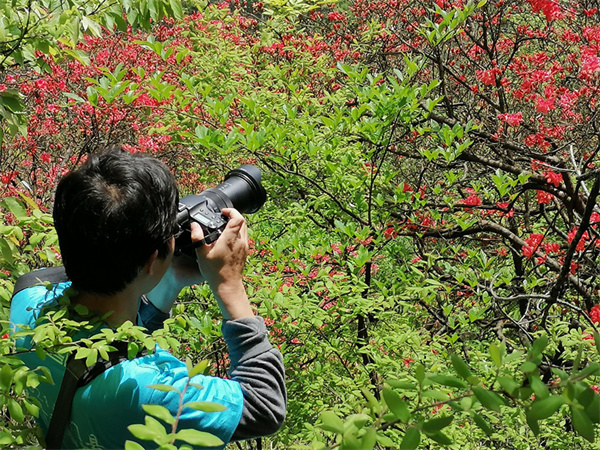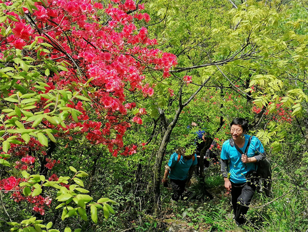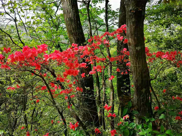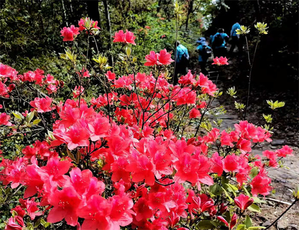 “人間四月芳菲盡,高山杜鵑始盛開”。眼下正是祁門縣秋風嶺古道上高山杜鵑盛開的時節。