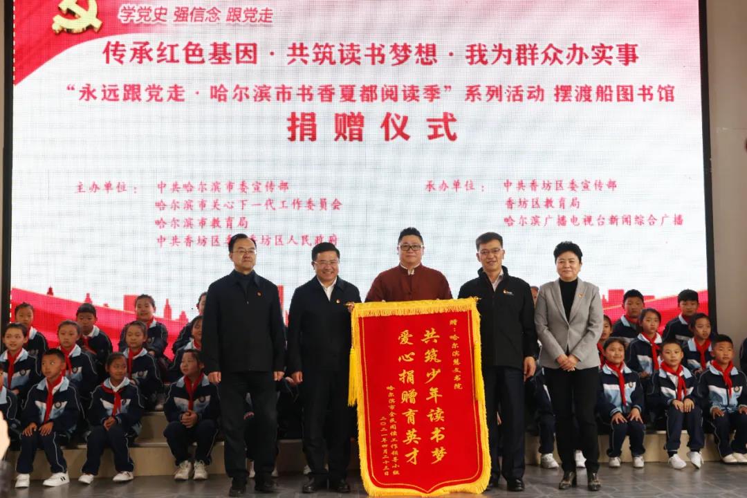 4月23日上午,「永遠跟黨走·哈爾濱市書香夏都閱讀季」系列活動——「傳承紅色基因·共築讀書夢想·我為群眾辦實事」擺渡船圖書館捐贈儀式在哈爾濱市香坊區香和小學校舉行。
