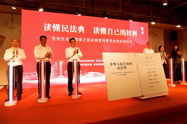 周學良常委、李懿副區長、馬文權院長等領導共同啟動寶安區全民閱讀之民法典宣傳普及活動