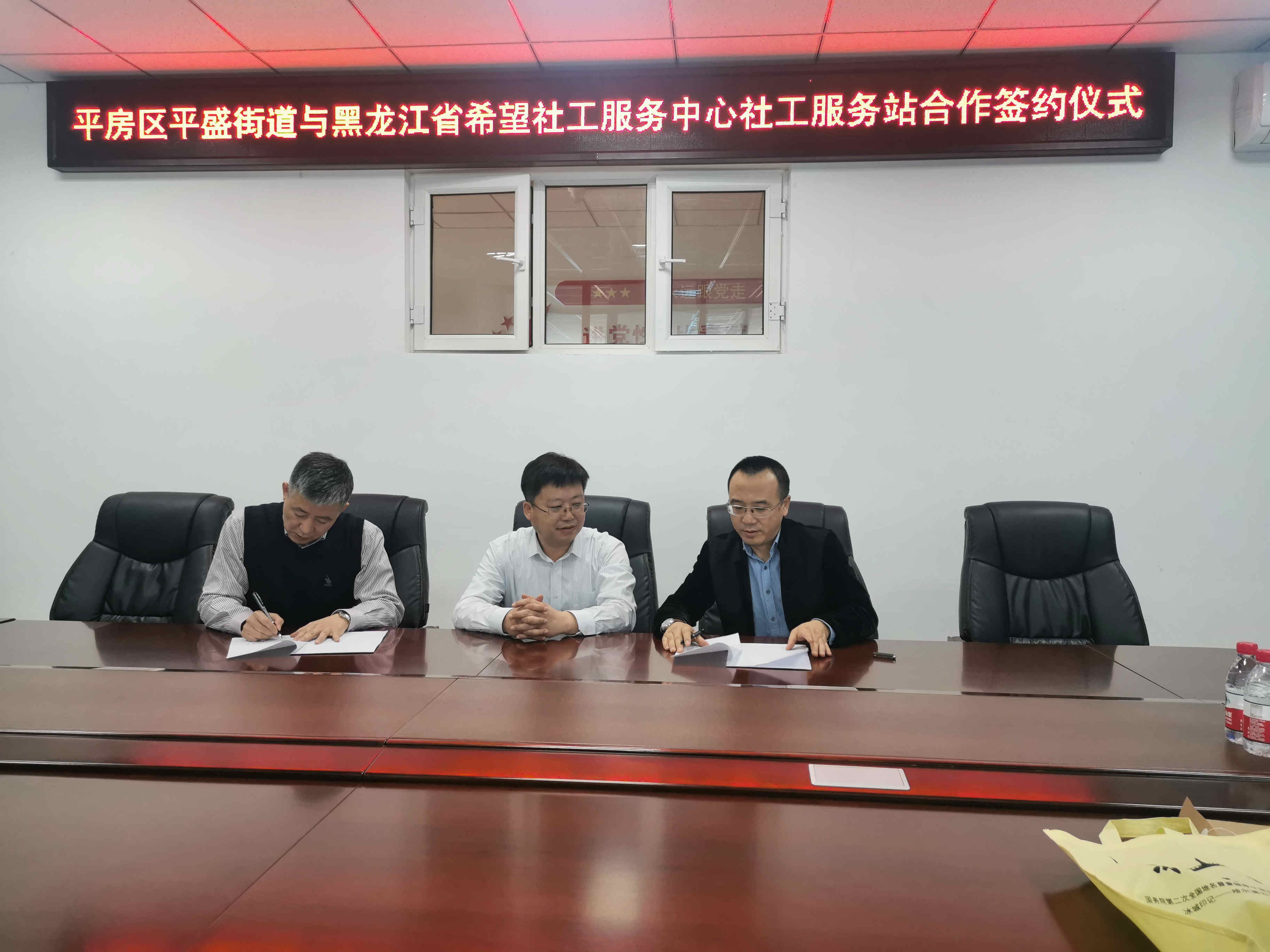 據介紹,根據黑龍江省鄉鎮(街道)社會工作站建設實施方案的要求,平盛街道辦事處與黑龍江省希望社會工作服務中心先試先行,成立了哈爾濱市首家街道社會工作服務站——平房區平盛街道社工服務站,以「社工+慈善+志願服務」的全新模式,開展社會救助、兒童福利、社區治理和其他領域社會工作服務,為平盛街道轄區的個人、家庭及廣大社群提供專業社會工作服務。希望社工服務中心和平盛街道在第一個3年項目周期內,將發揮社工領域的專業優勢和街道的黨建和行政優勢,通過社工站的平台發揮社會工作在基本民生保障、基層社會治理、基本社會服務等方面的作用,全力打通為民服務的「最後一米」,為平房區社會治理創新、鄉村振興提供有效助益。