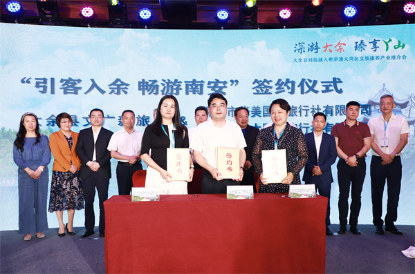 會上,大餘縣重點推出了紅色初心遊、福地生態游、絲路探秘游、理學溯源遊等4條精品文化旅遊線路,從歷史文化、自然資源、風土人文等多方面宣傳推廣大余文旅資源,展現大余文化旅遊品牌形象;帶來了南安歷史文化園項目、南方紅軍三年遊擊戰爭紅色研學基地專案、梅關古驛道項目、西華山礦山公園項目等16個文旅康養招商引資項目;與深圳市旅遊協會、百齡傲文旅發展有限公司、深圳市華美國際旅行社有限公司、深圳市亞太國際旅行社有限公司、深圳市路虎俱樂部、深圳市自遊穿越自駕遊有限公司等簽訂了項目合作協議。