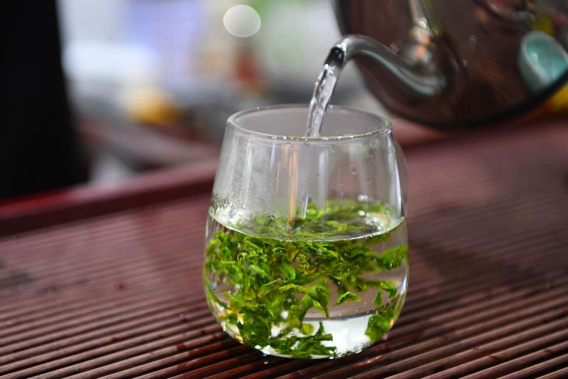 走進市場,空氣里便瀰漫着清甜的茶香,每戶商家都在商店的醒目位置展示着新上市的春茶,有的茶台前落座的顧客正在品茶、選茶、買茶。沸水注入透明的玻璃茶杯,茶葉隨着清水翻滾起來,十幾秒之間便「釀」出一杯淡綠的新茶,湊近聞香,清甜撲面而來,嘗一口,是春天的味道。