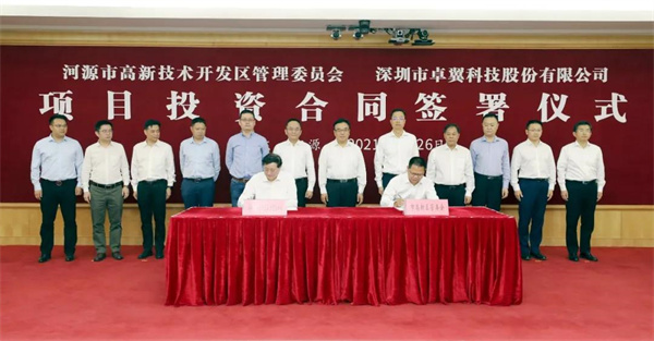 4月26日,河源高新技術開發區管委會與深圳市卓翼科技股份有限公司舉行項目投資合同簽署儀式,卓翼科技將投資50億元在河源高新區打造卓翼科技(河源)項目,這是繼中興通訊項目後河源引進的又一電子信息產業巨頭。