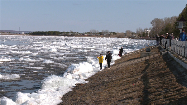 第一次看到龍江美景的天津遊客李建成說:「經過朋友的介紹,從天津來到呼瑪,等了好幾天吶,終於等到了開江,真的挺壯觀的,我拍了好多小視頻給我的朋友們,哎呀,他們都非常的欣賞,真的好棒。」