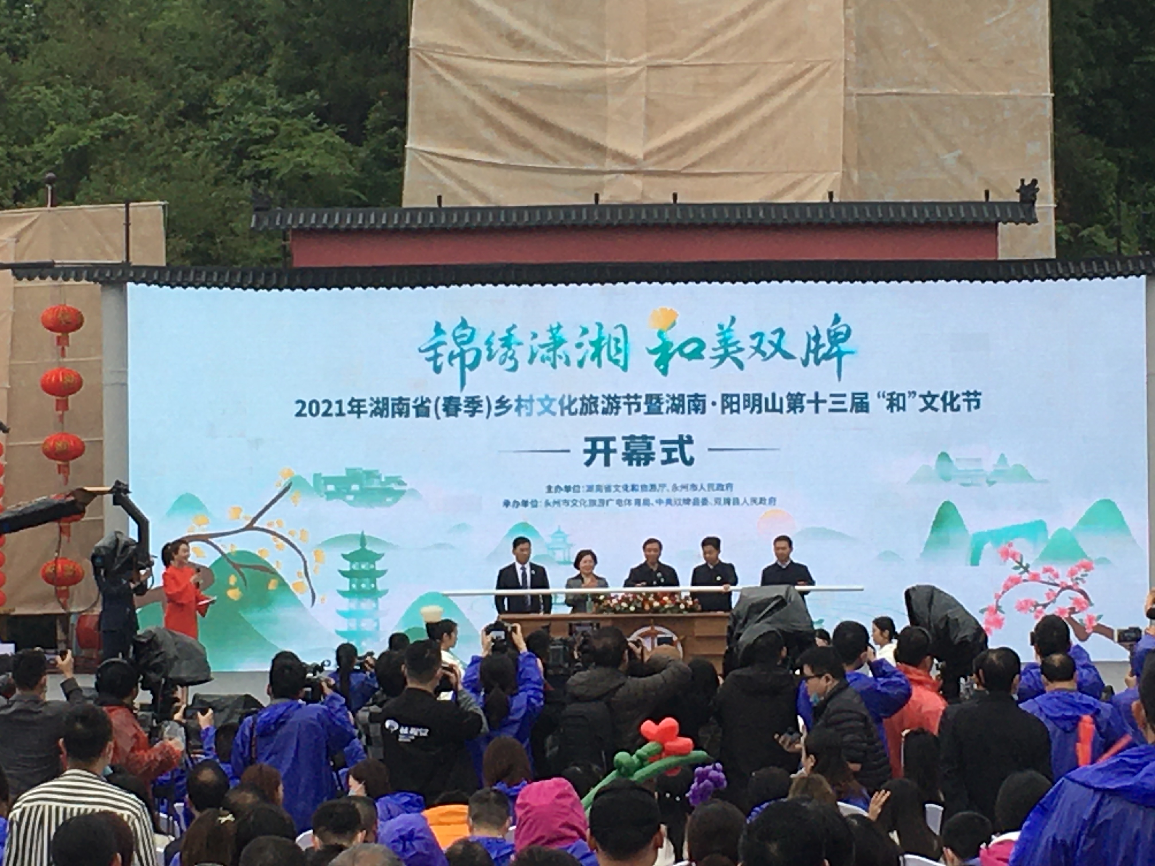 瀟水無私滋兩岸,和風有約駐雙牌。4月28日上午,「錦繡瀟湘·和美雙牌」2021年湖南省(春季)鄉村文化旅遊節暨湖南·陽明山第十三屆「和」文化節開幕式在永州市雙牌縣花千谷景區隆重舉行。