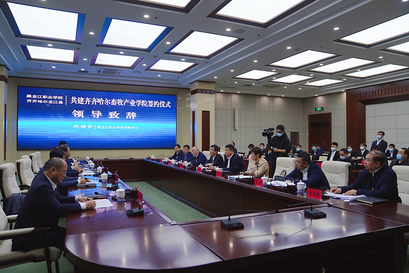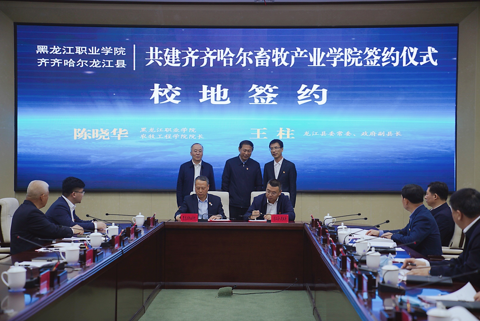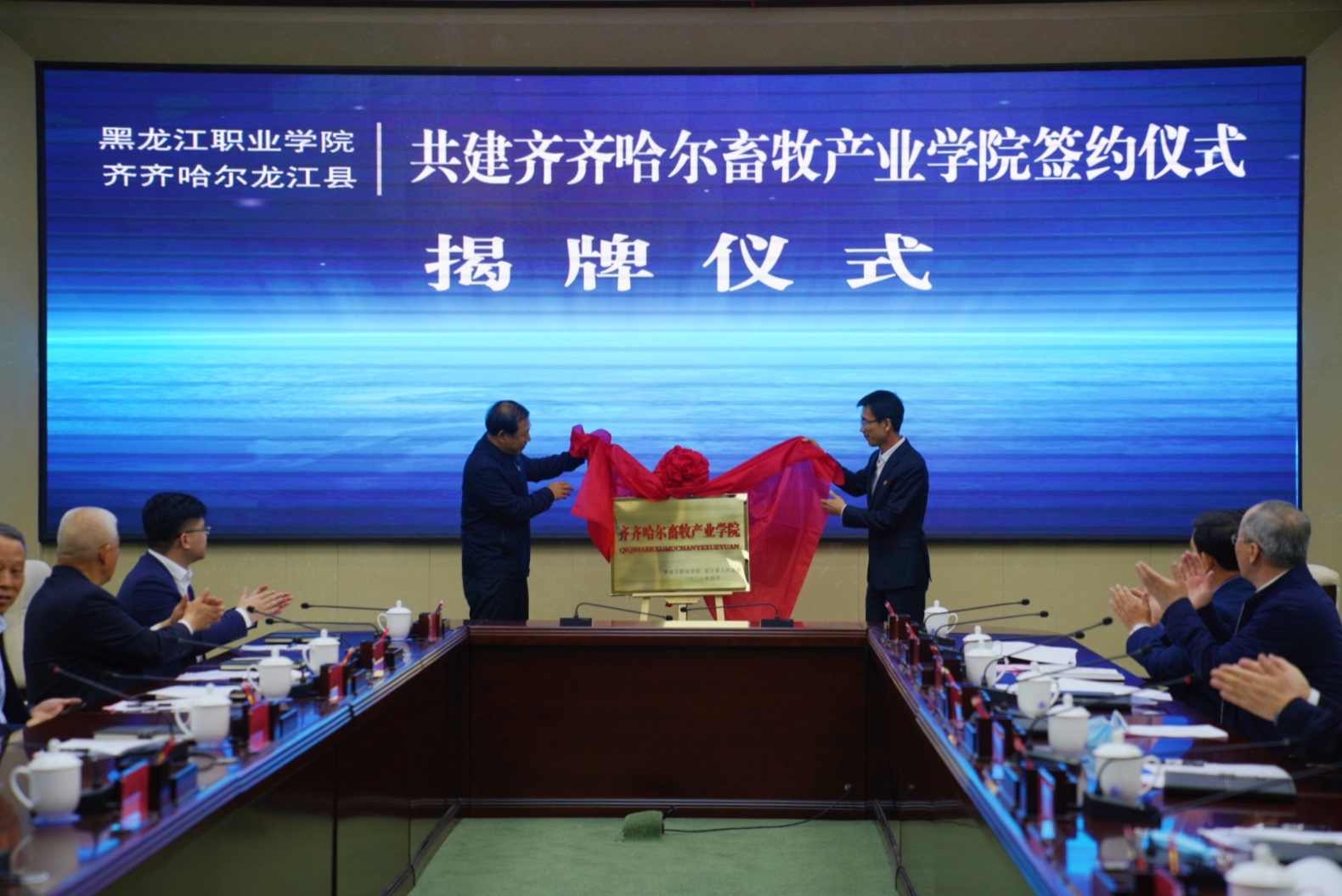 搭建校地校企合作平台,聚焦產業人才短板,接軌應用型院校人才培養體系,建立產業人才聯合培養機制。4月28日,黑龍江職業學院與龍江縣人民政府「共建齊齊哈爾畜牧產業學院」簽約儀式在齊齊哈爾市仙鶴賓館舉行。這次簽約是齊齊哈爾市「校企政」合作的一次有益探索,是產業人才培養、產教融合的新路徑、新載體,是推動全市畜牧業高質量發展的一項重要舉措。