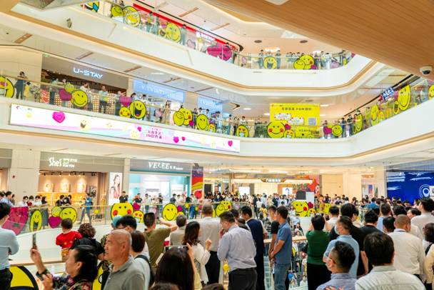 記者在現場看到,惠州印象城抓住潮流熱點,引進重量級國際IP首展,通過“全家皆宜”的潮文化表達啟動現場人氣,時下正當紅的潮流IP品牌SMILEY的最新愛心主題系列中國首展驚豔亮相,通過將“闔家歡式”IP品牌SMILEY新系列引入中國首展,帶來“怦然心動,心寄笑容”為主題的一組SMILEY元素,傳遞出積極樂觀的生活態度,用微笑力量擁抱惠州這座城市。