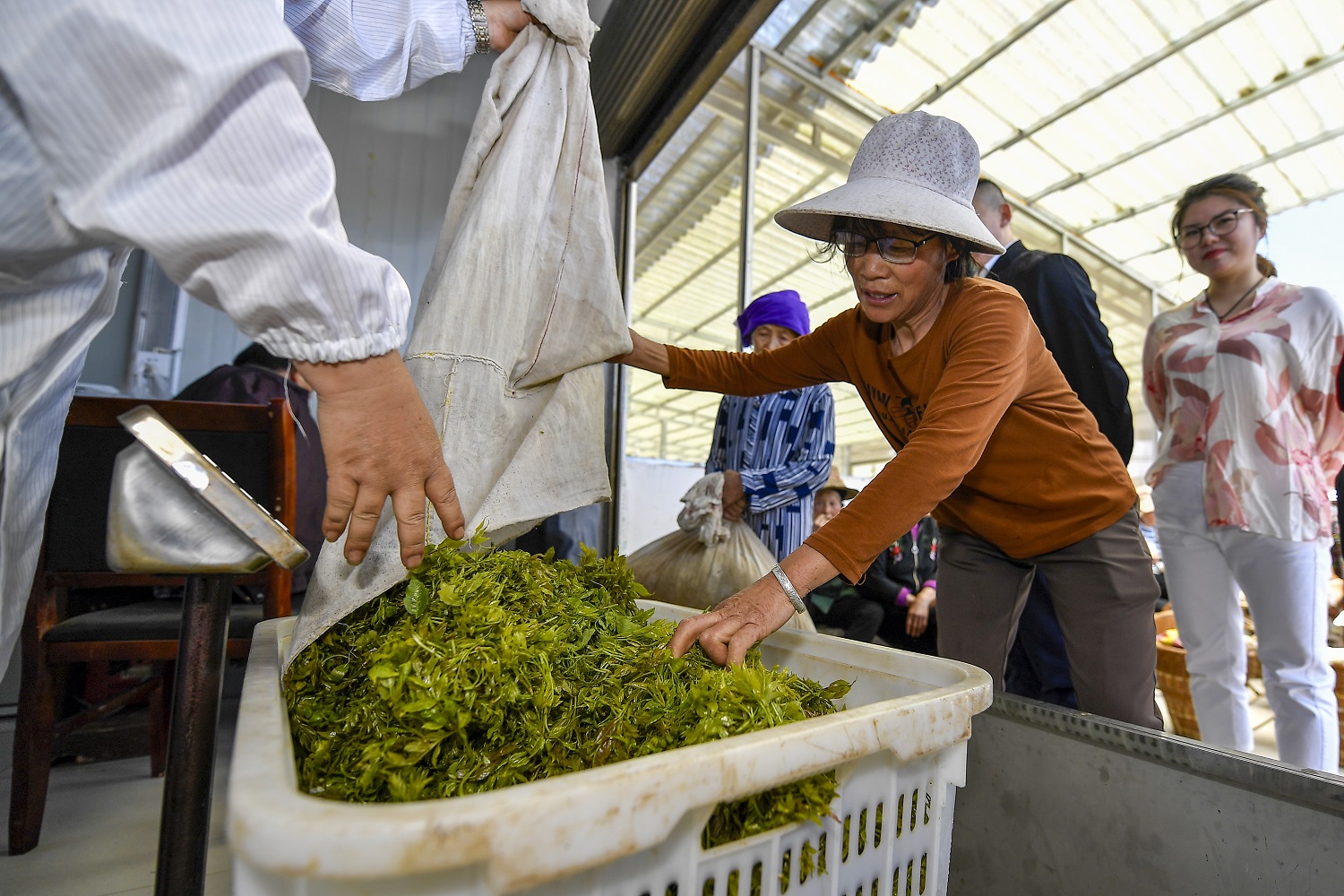春暖花開時節,正是採茶好時機。4月28日,張家界市永定區茅岩河鎮大米界村(莓茶核心主產區)的張家界莓茶標準化生產示範基地,春季第一批新茶正式開採。