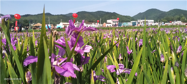 活動現場,遊客在欣賞美麗鳶尾花的同時,還可觀看戲曲表演、旗袍秀,參與歡樂尋寶遊戲,購買當地特色農產品。「我們這裏以前很少有人來,但自從種了鳶尾花田後,經常有遊客來我們這裏旅遊,一些攝影愛好者、旗袍協會的經常來村里採風拍照。」村名劉女士說道。