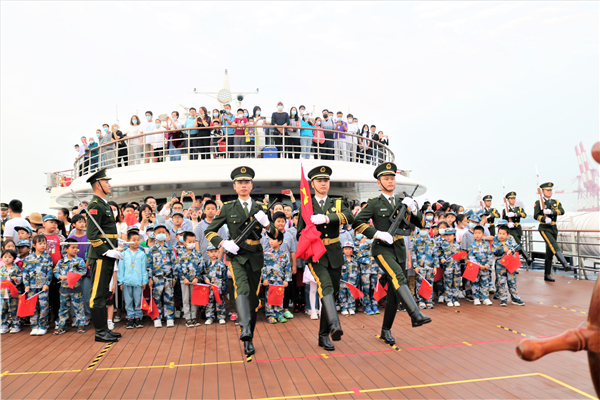 5月2日清晨,以愛國主義教育、國防教育、親子互動等為主題,以“海上升國旗·遊船觀日出”為特色的日出灣區——愛我中華·築夢啟航“五一”特別活動,在“大灣區一號”遊船上濃情舉辦。逾200名兒童及家長們共同打卡深圳網紅地“大灣區一號”遊船,接受紅色主題教育,賞愛國文藝匯演,放飛心中立志報效祖國夢想,暢享愉悅又難忘的海上之旅。
