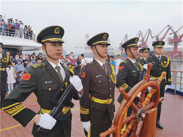 身處深圳網紅打卡地“大灣區一號”遊船,朝陽、藍天、碧海,紅旗、海鷗、雲霞,一併構成一幅醉人的畫面,把船上觀看日出的人們的希望和夢想點燃,紛紛攝影打卡拍照,為人生留下一段熱烈、動人的印記。活動現場,英姿挺拔、氣勢威武的標準儀仗隊退役隊員正步走、陣型變化等快閃表演,牢牢吸引了人們的視線。圍觀者按耐不住內心的激動,熱情地與儀仗隊員們合影留念,並用鏡頭記錄下難忘畫面,成為海港一道亮麗的風景線。整個活動過程中,“大灣區一號”遊船航行線路還途經了SCT碼頭、深圳灣大橋、人才公園 、深圳灣公園等著名景點,給航程增添了多樣旅途風光。(蘇偉)