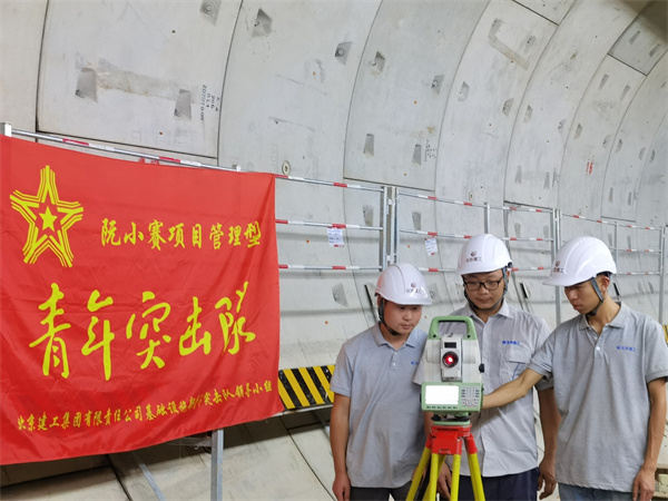 北京建工廣州地鐵五號線東延段的「青年突擊隊」成員正在進行測量作業。賴淑妍 攝