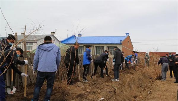 在推進「雙百」行動過程中,樺南林業局有限公司得到了樺南縣委、縣政府、柳毛河鎮政府和村民志願者的鼎力支持。在柳毛河鎮東華村綠化當天,樺南局森林經營管理部全員出動,從裝車運苗、技術指導到栽植驗收,全程跟蹤服務。參加勞動的廣大黨員幹部當先鋒、做表率,有的挖坑、修圍堰,有的栽植扶正、培土踩實……各個環節銜接有序、配合默契,僅用一天時間,4700餘株含苞待放的山杏、李子、龍鳳果樹,就紮根村民的房前屋後,一抹抹新綠整齊劃一、錯落有致地迎風舞動。