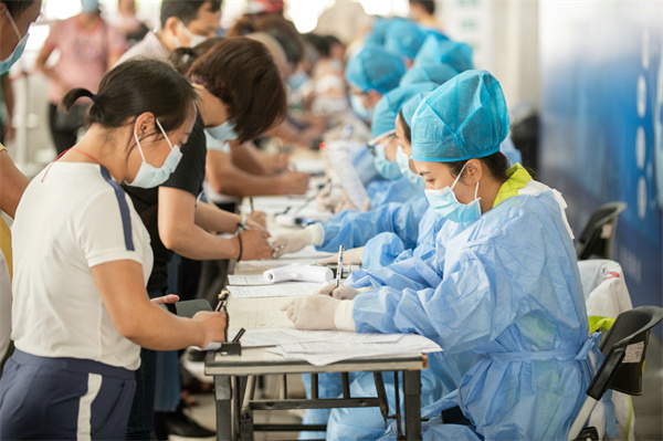 五一期間,團越秀區委組織青年志願者在北京路疫苗臨時接種點協助接種預約登記、信息諮詢等服務
