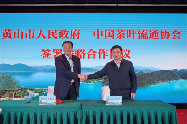 副市長張正竹(右)代表黃山市人民政府與中國茶葉流通協會續簽戰略合作協議