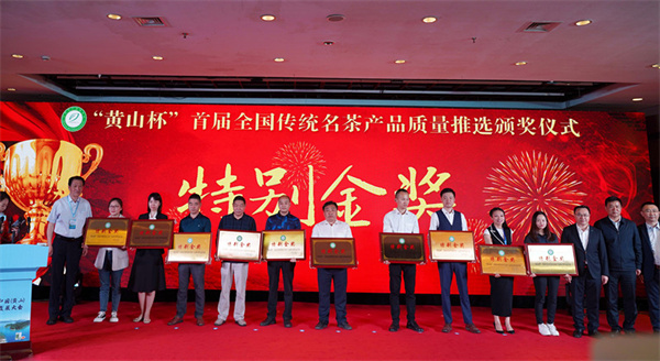 為獲得2021“黃山杯”全國傳統名茶推選特別金獎的獲獎企業代表頒獎