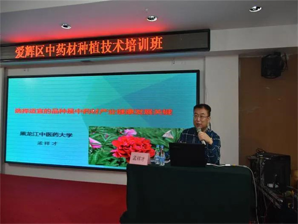 孟祥才對愛輝區中藥材產業發展提出了可行性意見,指明了今後愛輝區中藥材種植髮展方向,對中藥材栽培生產關鍵問題及解決對策和如何選擇中藥材種植品種進行了詳細講解,與學員們深刻交流討論中藥材種植髮展相關事宜。孫德全對愛輝區種植中藥材品種進行了逐一講解,根據愛輝區地理位置、氣候條件、土壤類型、選擇適合的道地中藥材品種,推薦品種為關防風、赤芍、蒼朮等。高明利通過如何選種、種植栽培、田間管理、病蟲害防治技術等方面對關防風種植技術進行了詳細講解。