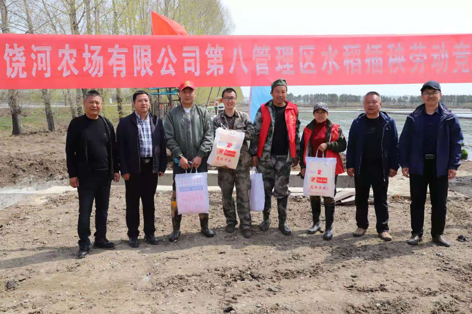 5月7日上午,在黑龍江饒河農場有限公司第八管理區水稻示範田,由有限公司工會組織開展的以「當好主人翁,建功紅興隆」為主題的水稻插秧勞動競賽正在火熱進行中。饒河農場有限公司副總經理周汝忠、農業發展部部長王饒兵、農業科技服務中心主任馬春林作為比賽評委受邀參加。
