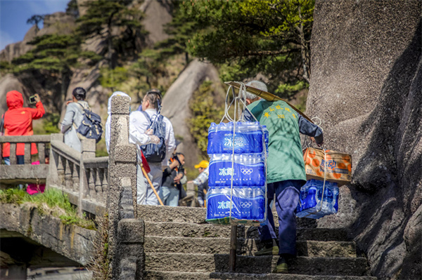 在黃山有一種風景叫挑山工,一根竹扁擔一根拐杖,挑起最美 黃山。我對這些挑山工從心底產生感激之情,由衷敬畏,即使頭髮花白,也能肩挑重擔。