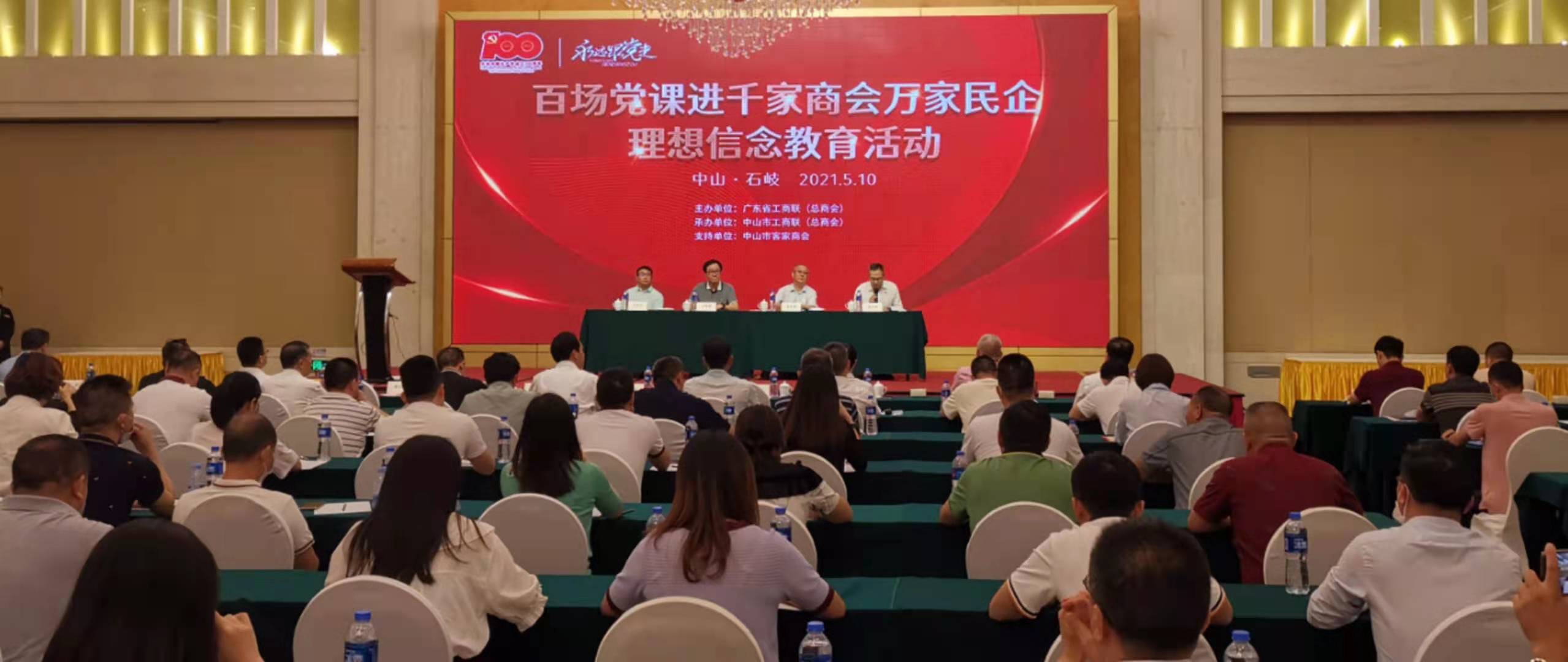 5月10日下午,由廣東省工商聯主辦,中山市工商聯承辦、市客家商會支持的「永遠跟黨走——百場黨課進千家商會萬家民企理想信念教育活動」中山市石岐專場,也是全省工商聯繫統地級市首場活動在金鑽酒店金鑽廳舉行。廣東省工商聯黨組成員、副主席張宏斌,中山市人大常委會副主任關瑞麟出席並講話,活動由中山市委統戰部副部長、市工商聯黨組書記郭叢樞主持。近200名中山市工商聯正副主席、會長,各商協會負責人、企業家等集中學習黨史和開展理想信念教育活動。