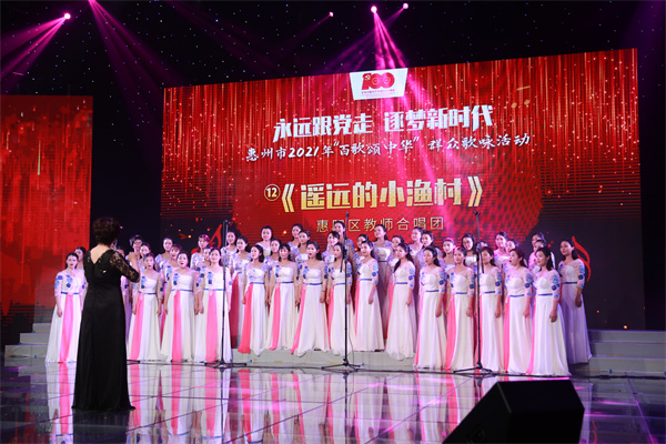 據了解,「永遠跟黨走 逐夢新時代」惠州市2021年「百歌頌中華」歌詠活動由中共惠州市委宣傳部牽頭,聯合市直機關工委、市教育局、市文化廣電旅遊體育局、市總工會、團市委、市婦聯、市文聯等單位共同主辦,目的是為慶祝中國共產黨成立100周年,充分發揮紅色文藝作品在黨史學習教育中的作用,通過文藝作品的感染力和穿透力,為該市黨史學習教育營造濃厚社會氛圍,豐富基層群眾文化生活,教育引導廣大黨員幹部、市民群眾堅定理想信念、築牢初心使命。