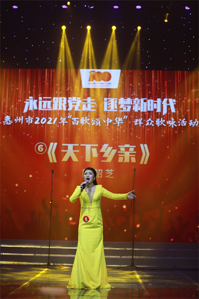 5月10日,惠州市2021年「百歌頌中華」歌詠活動市複賽及總決賽在該市廣播電視傳媒集團舉行,該活動主題為「永遠跟黨走 逐夢新時代」。經過激烈爭奪,陽韶芝,鍾婧、林雲環、吳春媚(組合),Oreo組合等3組歌手,惠州愛樂合唱團、惠州市惠陽區教師合唱團等2支合唱團脫穎而出,分別獲得總決賽歌手組、合唱組金獎。