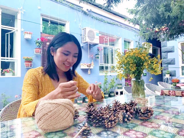 徐清竹在民宿內做手工。圖片由受訪者提供