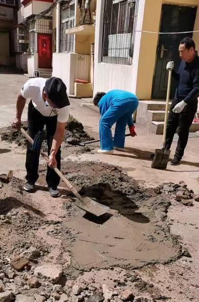 天氣漸暖,哈爾濱市香坊區紅旗街道香電社區老黨員郭秀娟帶領大家自籌各種工具,水泥沙子等材料一起修建公濱路383號院內的水泥路面。在郭秀娟的帶領下,老黨員們紛紛拿起鐵鍬,為路上的坑窪處填上泥沙。他們始終不忘黨員為民的初心,依靠自己的力量,力所能及地為民修路做好事,鄰里街坊紛紛為他們點讚。
