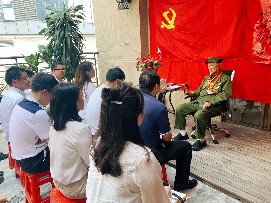 為慶祝建黨100周年,紮實開展黨史學習教育,引導黨員幹部學史明理、學史增信、學史崇德、學史力行,12日,廣東省東莞市工信局第一黨支部走進東江縱隊102歲老戰士、東莞黨齡最長的老黨員鄺耀水家中的「陽光課堂」,開展「尋初心,守初心,踐初心——聽百歲黨員講黨課」主題黨日活動,聽鄺老先生講授一堂別開生面的黨史課。