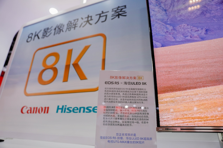 5月14日,第二十三屆中國國際照相機械影像器材與技術博覽會(2021 CHINA P&E)在北京開幕,海信、佳能兩大品牌攜手亮相展會,雙方分別發揮在超高清影像顯示和超高清影像拍攝方面的優勢,展示了其正在共同推進的8K影像解決方案。